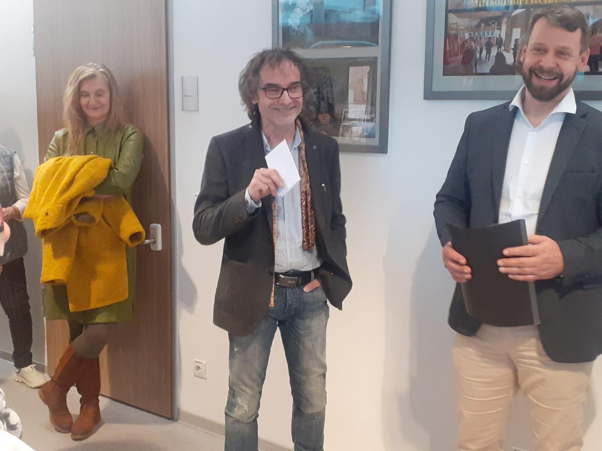 Michael Sack, Landrat im Landkreis Vorpommern-Greifswald, eröffnete die Vernissage mit einer Rede.